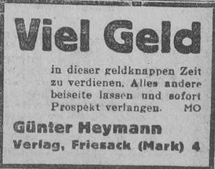 Heymann produzierte nicht nur Ratgeberhefte sondern versuchte sich offenbar auch